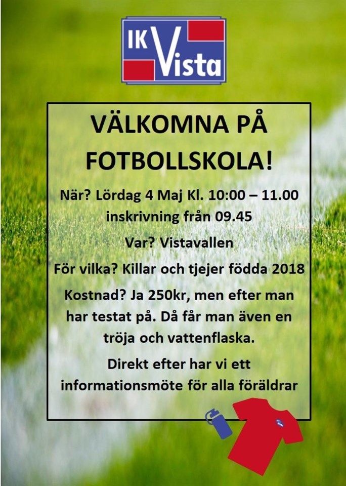 Då var det dax för barn födda 2018 att få börja spela fotboll i IK Vista. Fortsätter sedan samma tid under säsongen. Fotbollsledare 7 mar 2024 0kommentarer